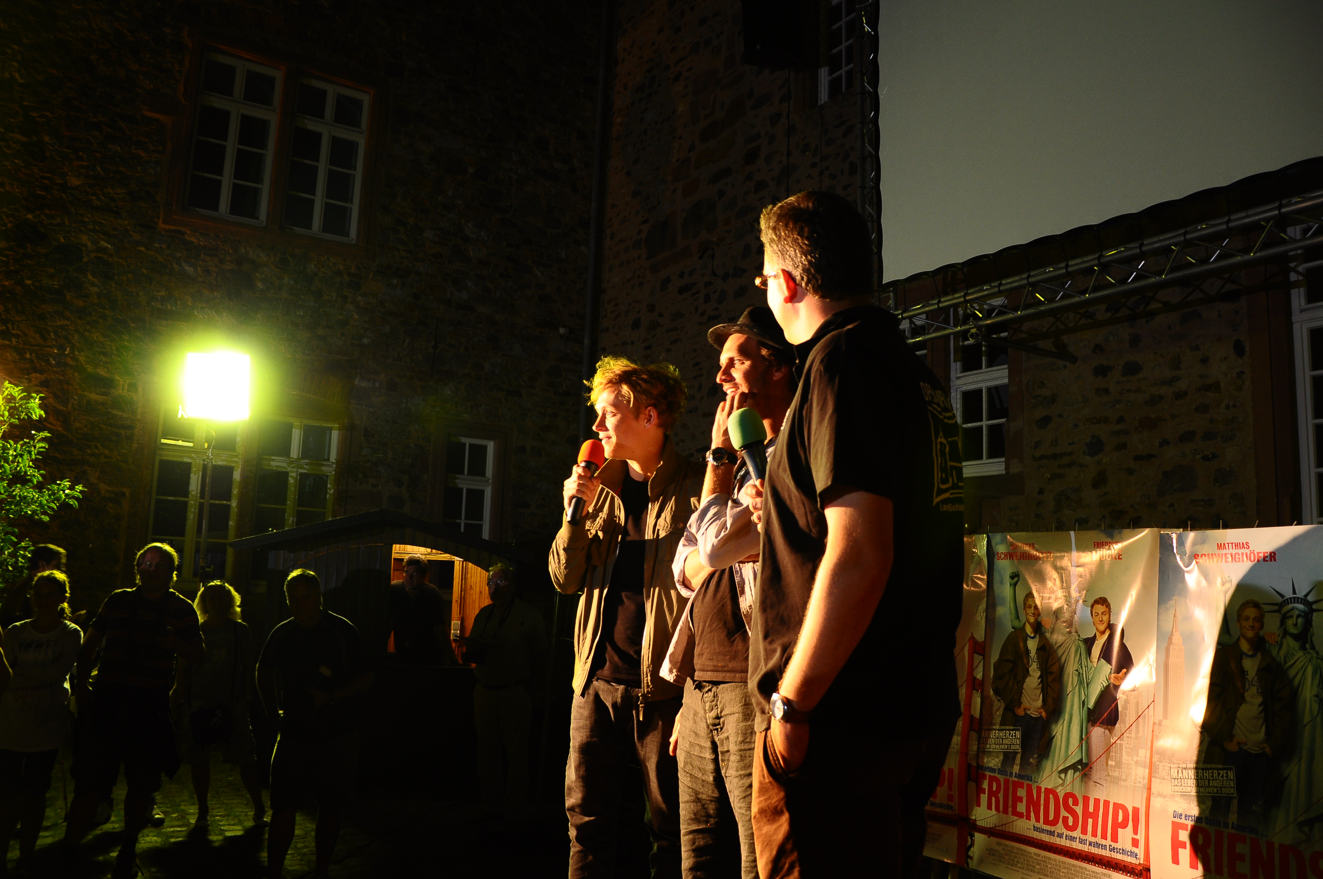 2848 RGB ca. 3067 KB) 1550 Besucher lockte am Dienstagabend die deutsche Produktion "Friendship!" ins Butzbacher Open Air-Kino ins Landgrafenschloss, zu der Hauptdarsteller Matthias Schweighöfer und Regisseur Markus Goller eigens nach Butzbach kamen zur Begeisterung der vielen Fans! Nach dem Film und dem Gespräch mit Moderator Michael Krause auf der Bühne vor der Leinwand nahmen sich die beiden mehr als anderthalb Stunden für Autogramme und Fotos mit den zahlreichen Fans (vgl. Bericht). Foto: Frank Himßel (Abdruck honorarfrei) |