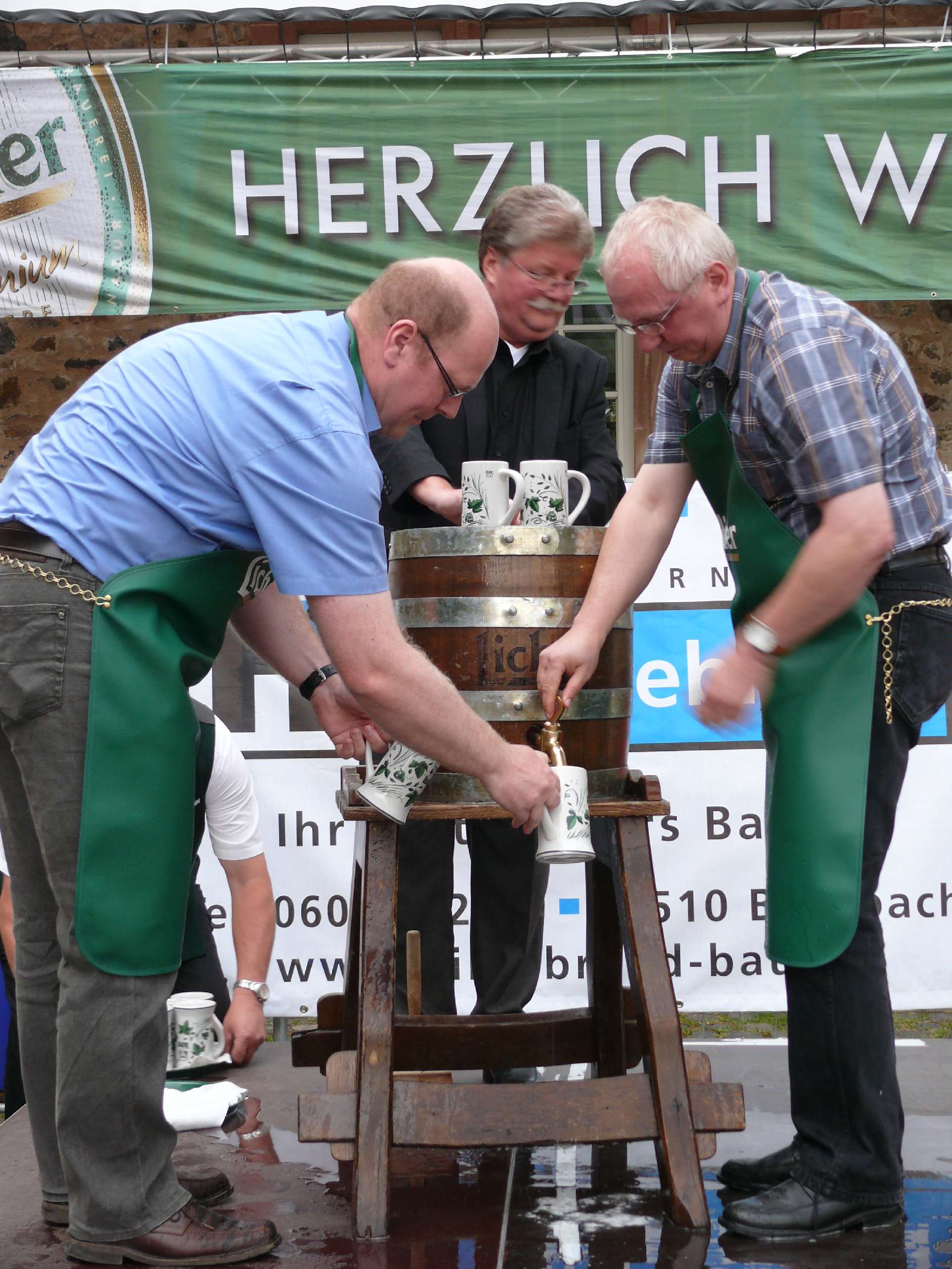 2569 RGB ca. 405 KB) Über 4500 Zuschauer haben bis zum Wochenende das Butzbacher Open Air-Kino im Landgrafenschloss bereits besucht. Am Freitagabend gabs für das Licher Original 1854 Festbier den offiziellen Fassanstich, durchgeführt von Butzbachs Bürgermeister Michael Merle, Friedhelm Bitzer und Dietmar Joseph von der Licher Privatbrauerei (vgl. Bericht). Foto: Patrick Kempf |