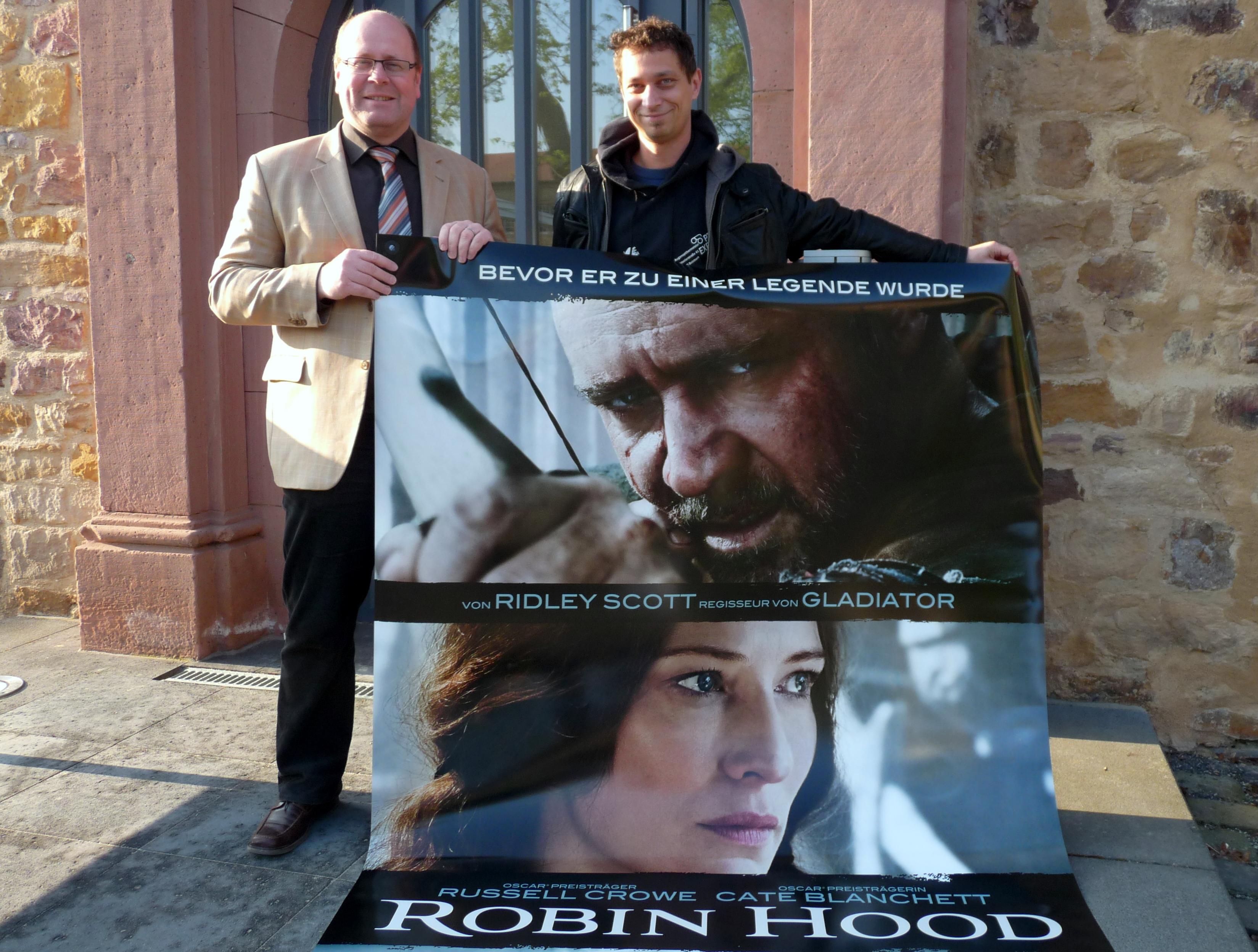 2496 RGB ca. 3.215 KB) Freuen sich auf das Butzbacher Open Air-Kino im Landgrafenschloss, das am Mittwoch, 21. Juli beginnt: Butzbachs Bürgermeister Michael Merle (li.) und Ralf Bartel vom Butzbacher Filmtheater (re.). Das Programm wird derzeit zusammengestellt, fest eingeplant ist u.a. der neue "Robin Hood"-Film (vgl. Bericht). Foto: Kino Butzbach |